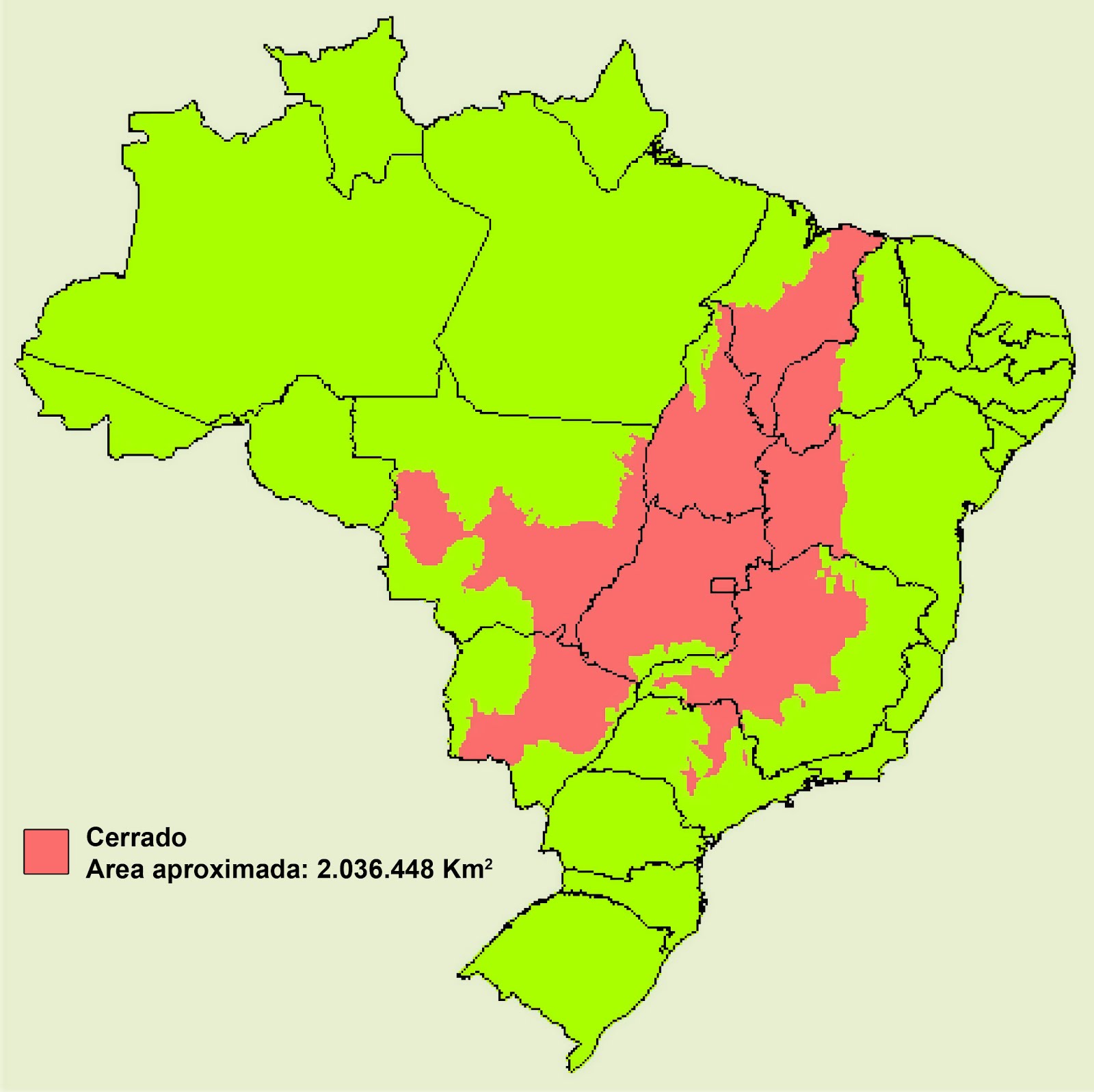 O Cerrado é conhecido como a savana brasileira e ocupa cerca de 22% do território nacional, abrangendo os estados de Goiás, Mato Grosso, Mato Grosso do Sul, Minas Gerais, Tocantins, Bahia, Maranhão, Piauí, São Paulo e partes do Distrito Federal. Ele também é chamado de "berço das águas", pois abriga importantes nascentes de rios das bacias do Paraná, São Francisco e Tocantins-Araguaia.